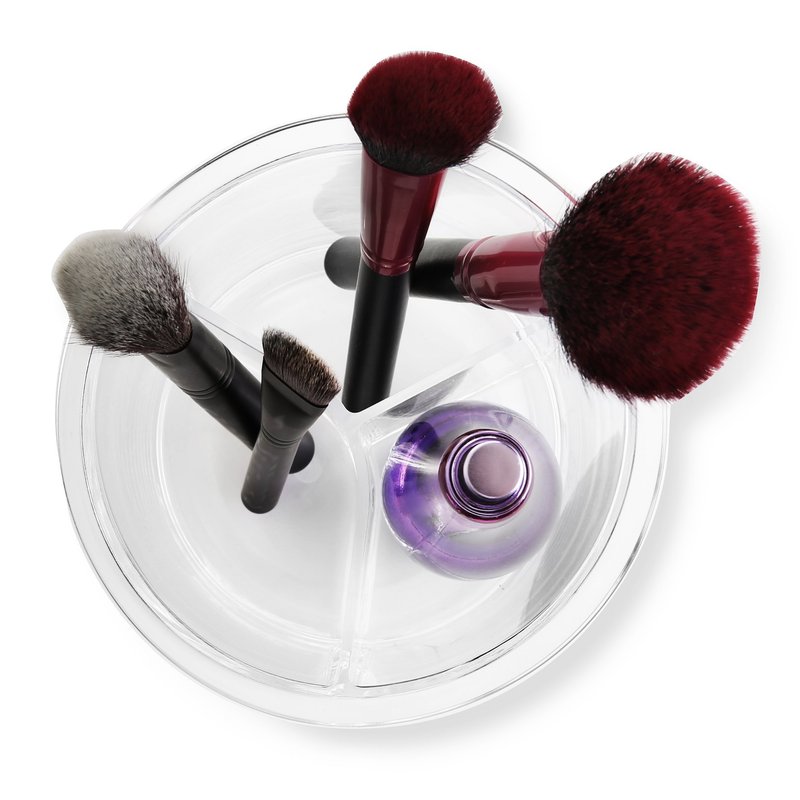 This acrylic organizer has standing sections that are perfect for taller items such as brushes or pencils. Made out of durable, crystal clear acrylic. To clean, wash with a gentle soap and warm water.
