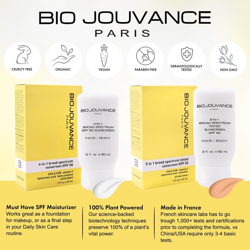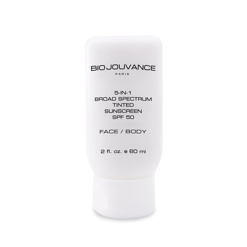 Bio Jouvance - 5-in-1 Tinted Sunscreen SPF 50 Universal 2oz / 60ml - Broad Spectrum | Hydrating Sunburn Lotion | Mineral Zinc Oxide Sun Block | Professional Facial Skin Care Treatment | Made in France