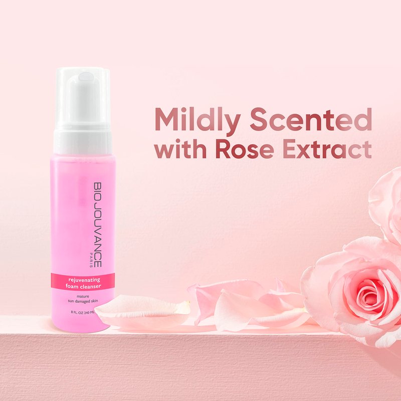 A gentle foaming cleanser formulated specifically to cleanse thoroughly without drying or irritating the skin. Daily use of the Bio Jouvance Paris Rejuvenating Foam Cleanser, followed by Rejuvenating Rose Toner, Serum, and Day or Night Cream will leave the skin feeling refreshed and balanced. It also is an excellent makeup remover. As all Bio Jouvance products are made to work synergistically, using these products together will bring forth visible results. Formulated for all skin types.