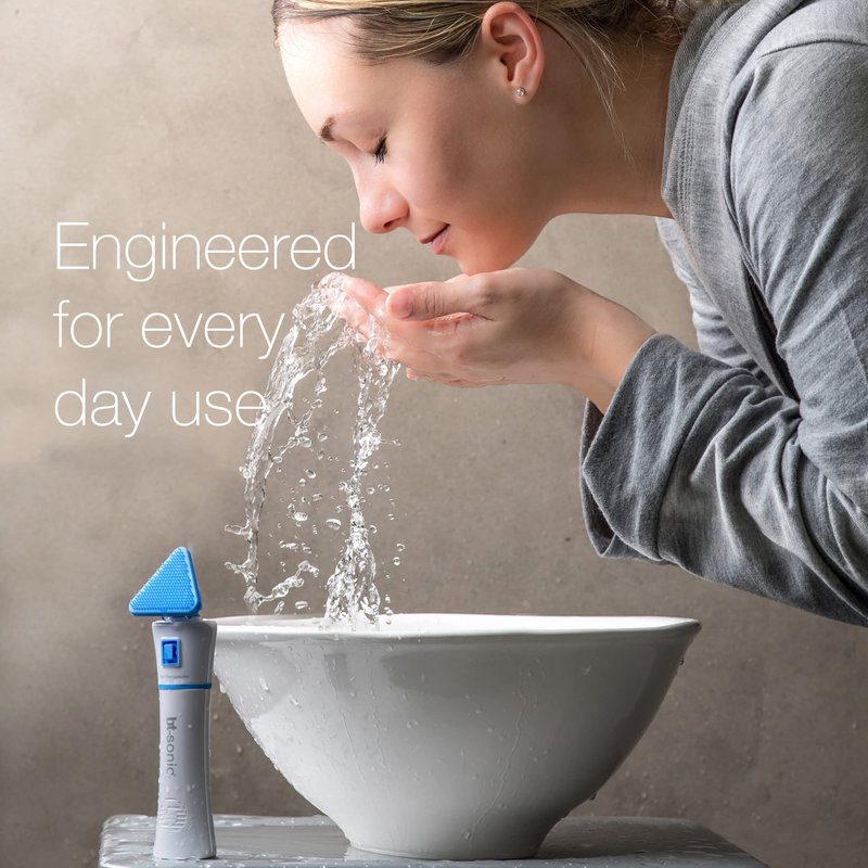 The bt-sonic is truly the only cleansing brush you will ever need, designed by the skin experts at Bio-Therapeutic. For nearly fifty years, Bio-Therapeutic has pioneered the use of advanced technology in the professional skin care industry; and the bt-sonic brings our award winning expertise to the home regimen, delivering professional grade results with every use. Anatomically optimized triangular cleansing head reaches even the hardest to reach contours of the facial landscape, delivering results in places round brushes simply can’t go. Hygienic, silver ion infused Azul silicone bristles deliver superb cleansing and exfoliating results without stressing the skin the way traditional brushes can. The ultrasonic waves pulsate at up to 20,000 vibrations per second, dislodging dirt and debris and optimizing the performance of your chosen cleanser or exfoliant. Powerful ultrasonic motor delivers optimum performance while intelligently extending battery life. Lightweight design with IPX6 water resistance makes this ideal for professional, home and on the go use. Perfect for use in the shower! Bio-Therapeutic is a minority, family owned business based in Seattle, where we design, engineer and manufacture all of our technology in our ISO 9001 / ISO 13485 certified manufacturing facility. Engineered for safety, the bt-sonic is CE safety compliant.