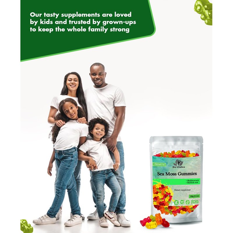 BIO VITALICA Sea Moss Gummies - Irish sea Moss raw Organic, Bladderwrack, Burdock Root. Contains Sea Moss Gel and Powder. Superfoods for Vegan, Keto and Dr Sebi Diet. Immune Boosting (1, Original)