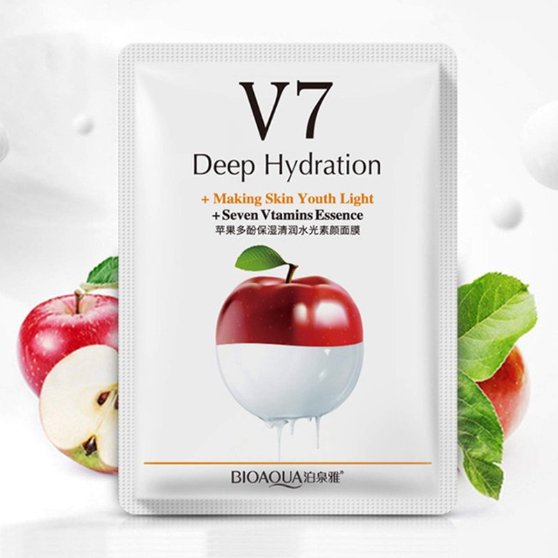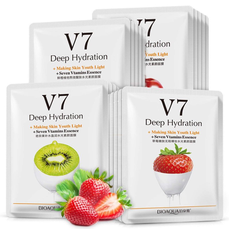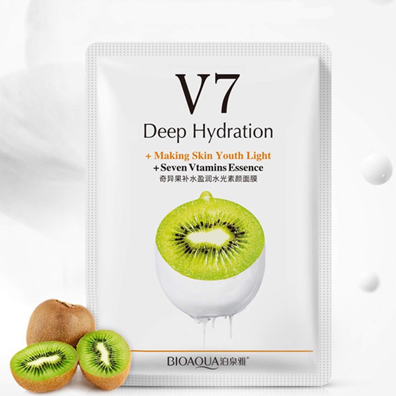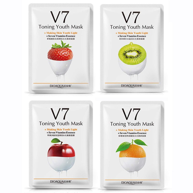 BIOAQUA V7 Deep Hydration Making Facial Skin Youth Seven Vitamins Essence Orange Kiwi Apple Strawberry Face Mask Refreshing Moisturizing Natural Extract 30g x 8 PCS