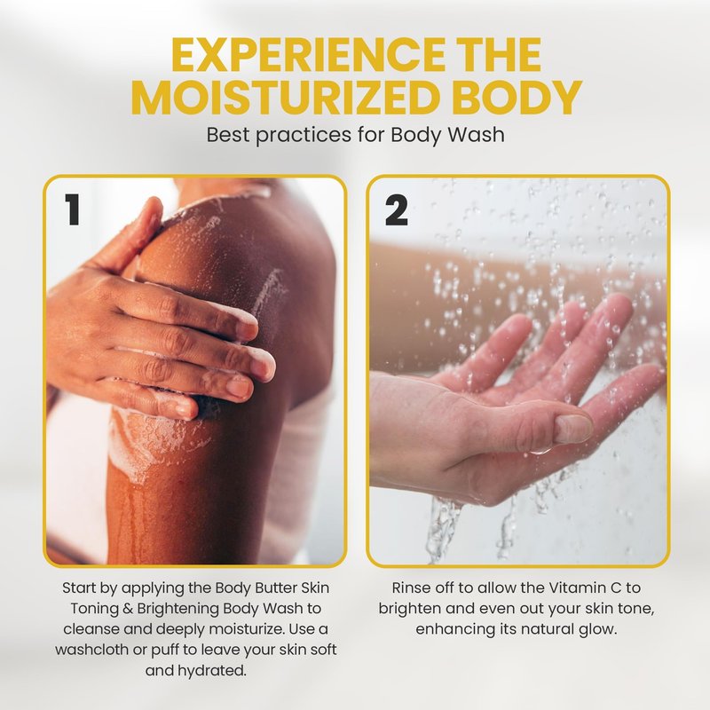 - RADIANT GLOW: Our Vitamin C enriched body wash revitalizes your complexion for a brighter look. It's your daily partner for a luminous glow, easily fitting into your skincare regimen.