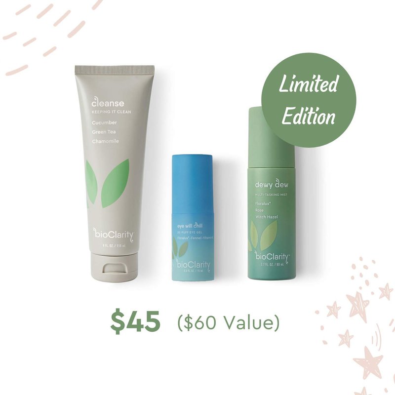 - Elevate your skincare routine with the BioClarity Essentials Skin Routine designed for All Skin Types. Cleanse, refresh, purify, and de-puff eyes with this curated set of products, providing a gentle yet effective approach to achieving clean, hydrated, and revitalized skin. Crafted with 100% clean, vegan ingredients, this routine offers a comprehensive solution for your daily skincare needs.