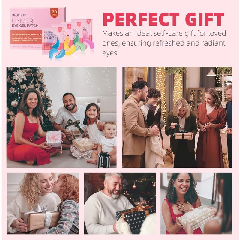 BIODREL Under Eye Gel Patches – your ultimate solution for tired, puffy eyes. Each pack contains 20 pairs of patches in four vibrant colors, with five patches of each unique type. Crafted with premium ingredients, including 24k gold, hyaluronic acid, and rose and green tea extracts, these patches effectively target dark circles, puffiness, and tired-looking eyes. Experience intense hydration, nourishment, and rejuvenation as these patches work their magic on the delicate under-eye skin.