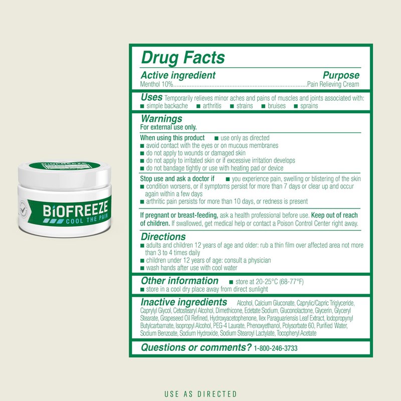 - Biofreeze Cream is non-greasy with natural moisturizers and penetrates for pain relief