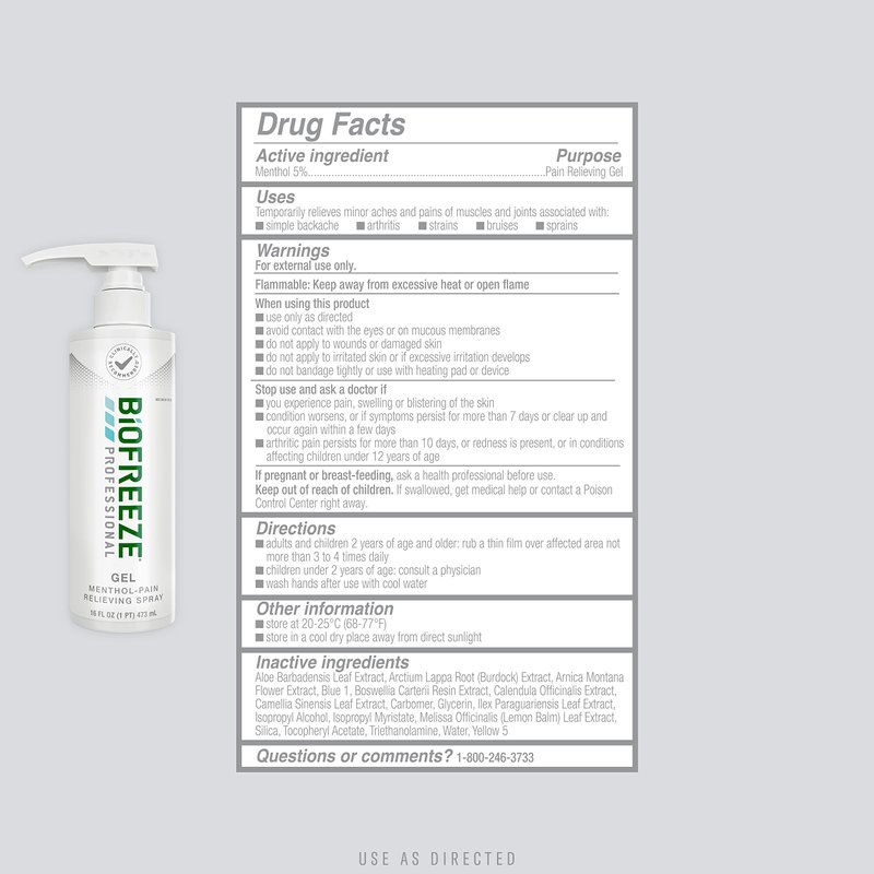 - Biofreeze Professional Menthol Pain Relieving Gel applies easily and penetrates for pain relief