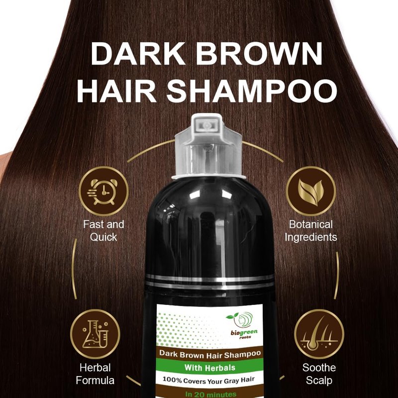 Biogreen Roots Ammonia-Free Herbal Hair Shampoo - Effectively Covers Gray Hair for Men and Women - Natural Color and Herbal Nourishment - No Stain on Skin - Dark Brown (400 ml)