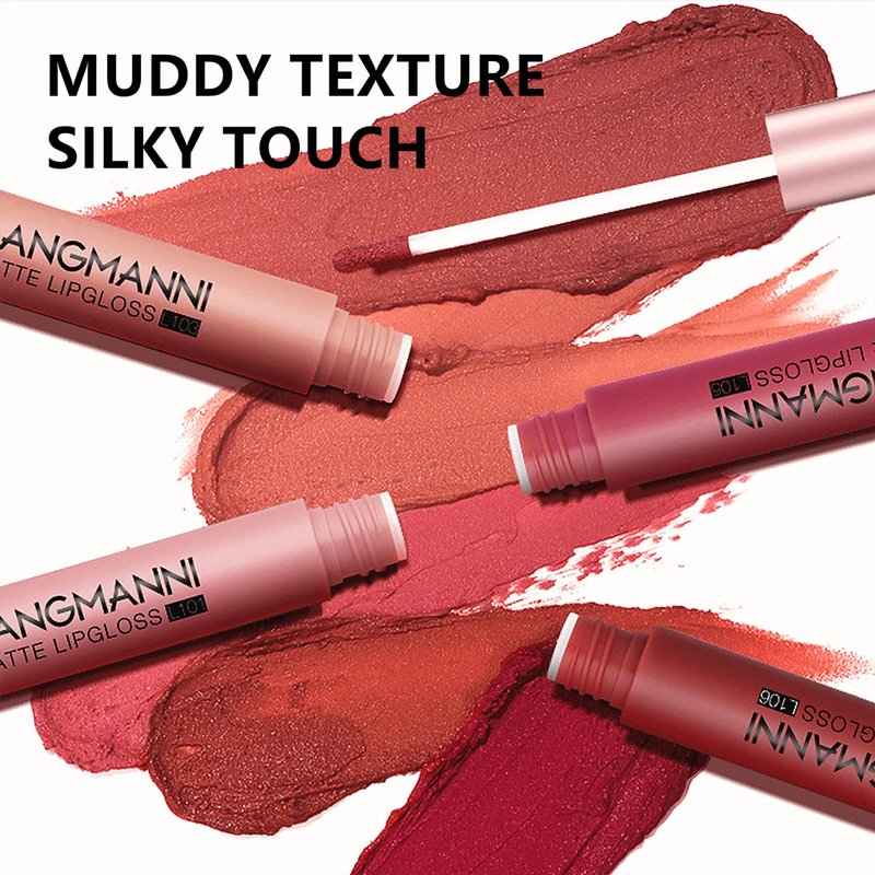 - MUDDY TEXTURE: The matte lip gloss has a velvety matte powder finish,similar to clay mud. Extremely buttery and smooth. It looks thick, but really weightless and silky, blends out so softly and stretchable, burr out the dry creases on lips. It contains moisturizing ingredients for a comfortable, never feels dry.