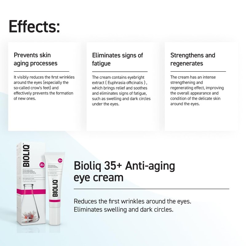 - Reduces First Wrinkles: Bioliq 35+ Anti-aging Eye Cream is formulated to target and diminish the appearance of initial fine lines & wrinkles that can develop around the eyes, for a more youthful look.