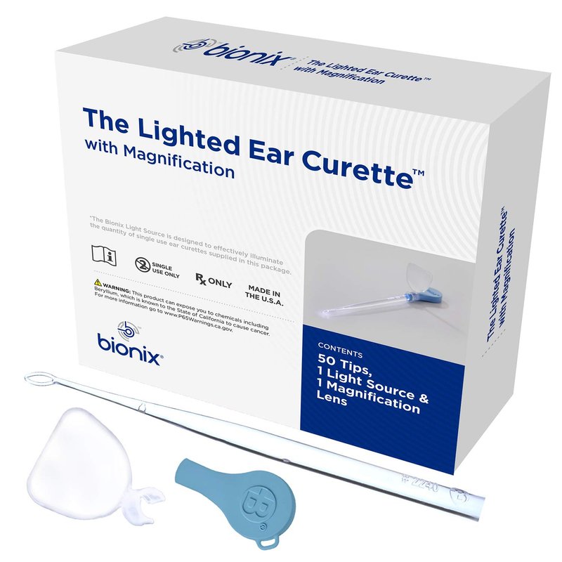 For over 35 years, Bionix has sought to modernize and simplify the process of medical practices with the use of high-quality healthcare products that are made in America. Doctors Andrew Milligan (PhD) and James Huttner (MD, P.h.D) founded Bionix with the goal of combining their extensive medical knowledge and genuine desire to make procedures faster and easier for both medical professionals and patients. At Bionix, our mission is simple: offer single-patient use products that promote exceptional quality, helping to service patients and propel medical innovation. A powerful LED Light Source and Magnification Lens on this earwax removal tool offer complete visibility during what has typically been a blind procedure. This lighted earwax cleaner has a unique 4mm wide, oval loop tip for gentle removal of impacted wax, and/or retrieval of foreign objects. It is designed to minimize discomfort and increase safety in children and adults. Try the Bionix family of Lighted Ear Curette products for greater confidence, safety, and effectiveness for patients of all ages. Disclaimer: Federal law restricts this device to sale by or on the order of a licensed healthcare practitioner.
