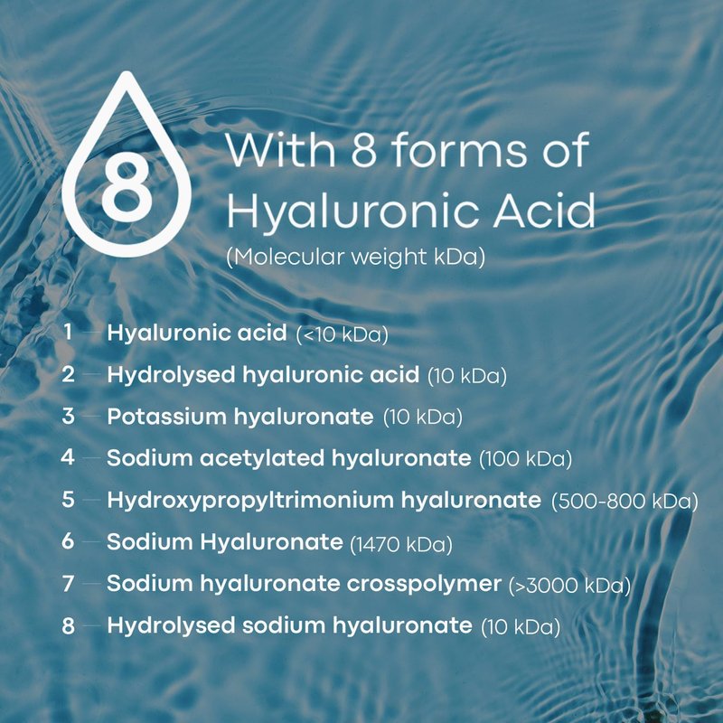 - Powered by 8 advanced forms of Hyaluronic Acid: With 8 different molecular weights, each working in synergy to deliver multi-layered hydration. This unique formula provides deep, lasting moisture while strengthening your skin barrier.