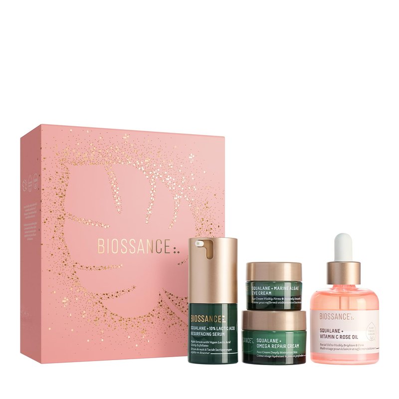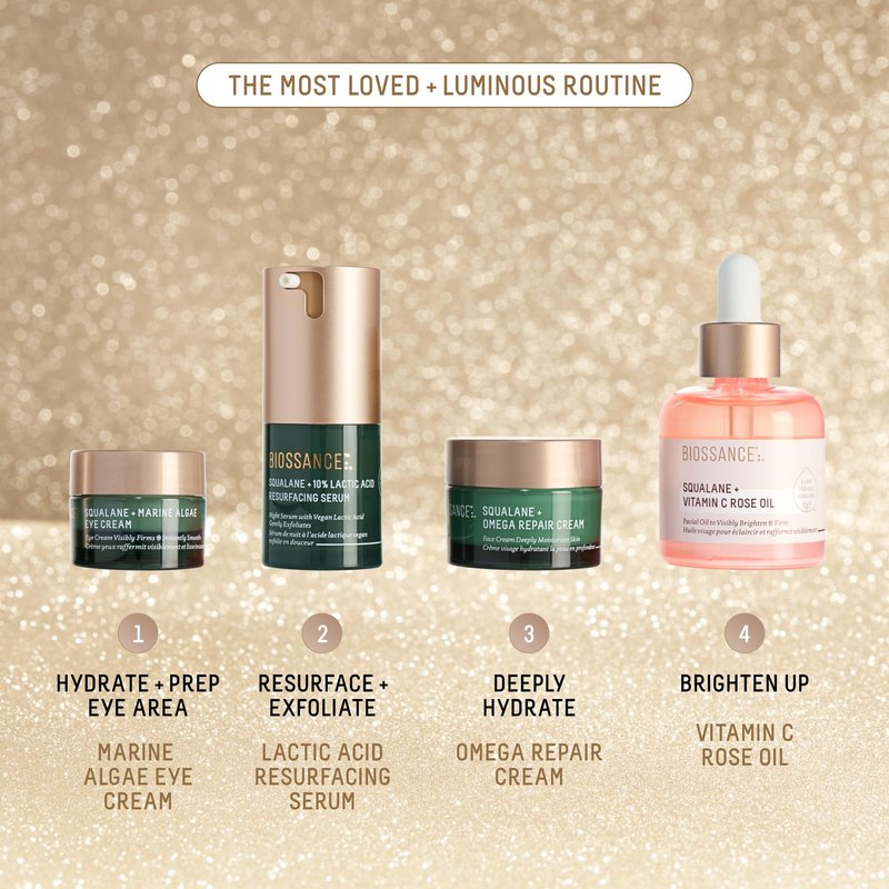 Biossance Most Loved + Luminous Skincare Holiday Gift Set, Vitamin C Rose Face Oil, Marine Algae Eye Cream, Omega Repair Face Moisturizer, and Lactic Acid 10% resurfacing face serum, $143 value, 1 Set