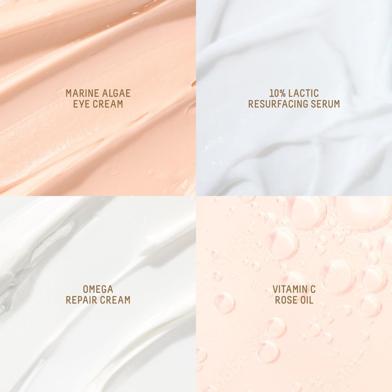 Restore radiance, boost the look of elasticity, lift, and hydrate with four best-selling formulas. Visibly lift and firm with our luxurious eye cream. Experience smoother, softer texture with our resurfacing serum. Deeply moisturize and nourish with our omega repair cream. Then lock it all in with our elasticity-boosting rose oil. Everyone on your gift list (+ yourself) will be sure to love this holiday set.