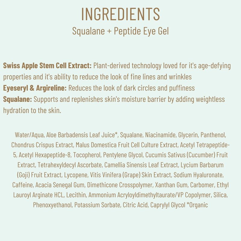 - REDUCES PUFFINESS - This Squalane + Peptide Eye Gel quickly calms puffiness and irritation. With just a drop, it soothes and refreshes the under-eye area, leaving your eyes looking well-rested and bright, instantly revitalizing your appearance.