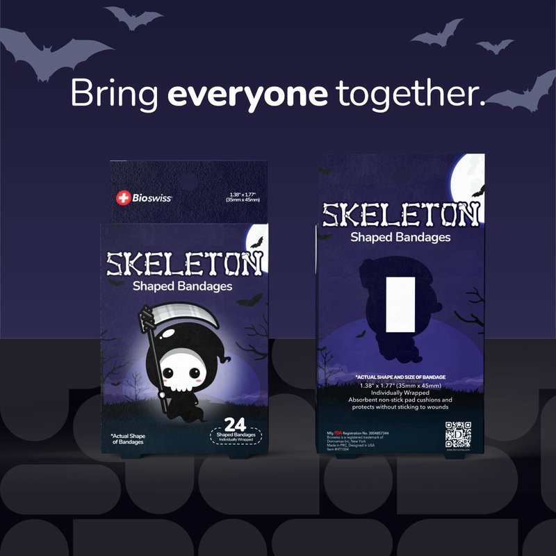 - SKELETON HALLOWEEN BANDAGES: This 24 piece pack of frightfully fun Halloween Skeleton bandages is great for putting a smile on kids' faces while protecting wounds such as cuts, scrapes, and burns; sticky bandages are perfect for kids and adults alike, and also for school nurses and pediatric doctors
