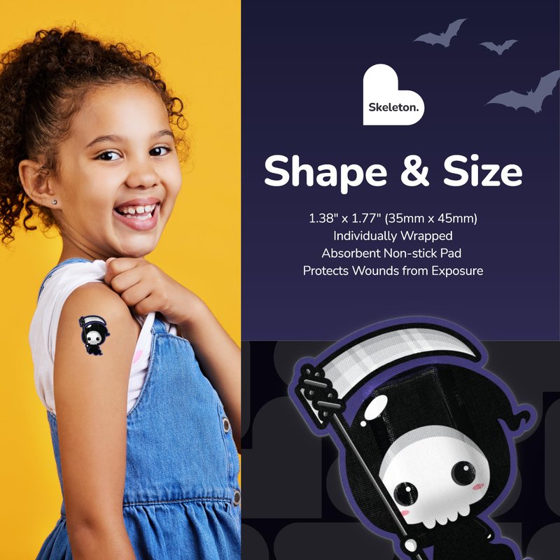 - SAFE PACKAGING: These sterile skeleton cartoon character bandages come in spooky packaging, and are individually wrapped for safe handling; small bandages help protect kids' sensitive wounds from coming into contact with dirt for first aid wound care