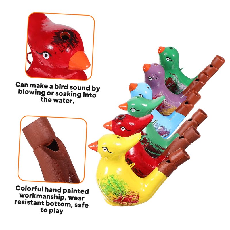 - -- Funny Bird Water Whistles: Every bird whistle has a water outlet. Just pour a little water and start chirping. The sound is as vivid and crisp as a bird, and you can whistle without adding water.bird whistles water