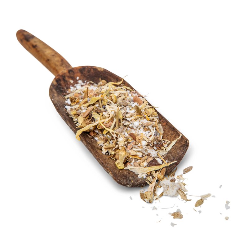 Ingredients: Epsom Salt, Marshmallow Root, Witch Hazel bark, Uva Ursi leaf, Yarrow leaf, Chamomile flower, Lavender flower, Chickweed leaf and Calendula flower.