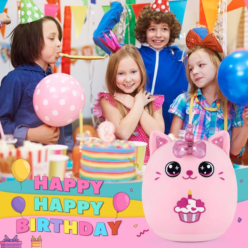 - 【Perfect Birthday Gift】This birthday cat plush is a great choice as a birthday gift. Boys, girls and friends who receive this happy birthday stuffed puppy toy must be delightful and satisfied. This cute soft cat plush toy can used as home decor and a charming addition to your Halloween party, bedrooms, living rooms, and offices. This cute birthday cake cat pillow is also cozy companion on the sofa and a supportive waist pillow. You can hug it anytime to enjoy comfortable sleep in bed.