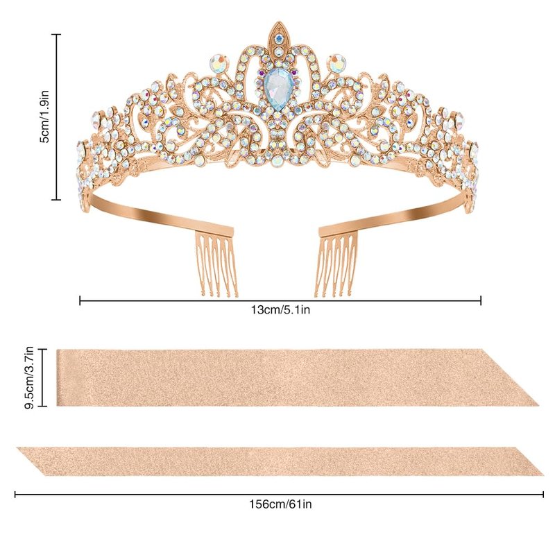 - 💗[Material] Each belt is 3.7 inches wide and 61inches long. The birthday tiara is made of rhinestones and alloy and each tiara measures 5.1 inches (13 cm) in diameter and 1.9 inches (5 cm) in height. The tiara can be freely adjusted to fit the size of the head.