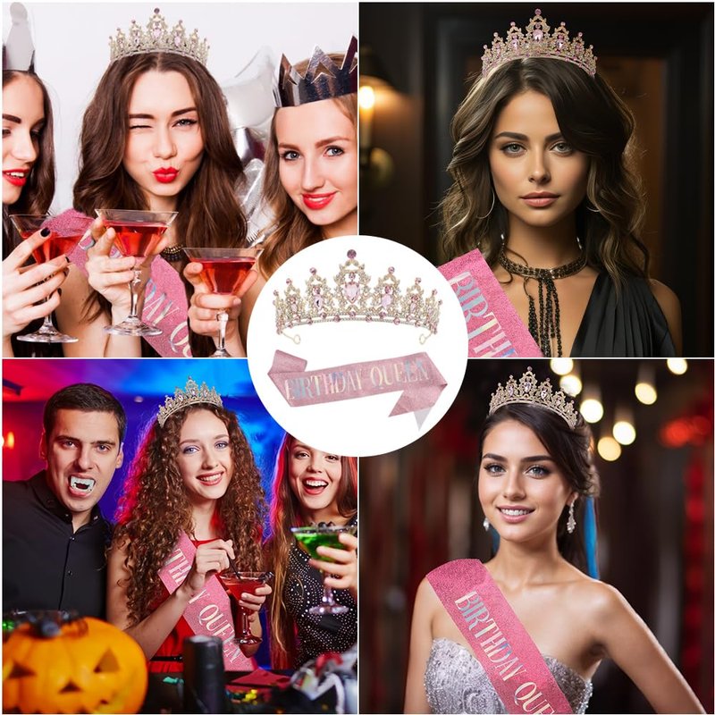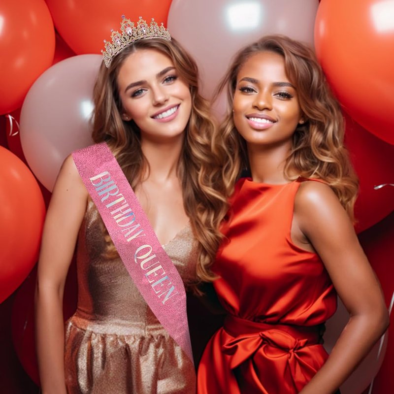 Birthday Sash for Women,Birthday Crown Adult Woman,Birthday Tiara for Women,Birthday Gifts for Women,Birthday Sash and Crown,Birthday Queen Sash,Birthday Queen Crown,Pink Birthday Sash,Pink Tiara