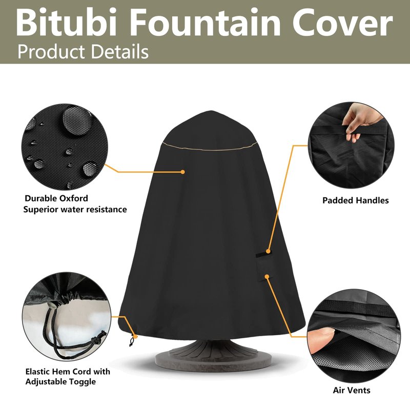Bitubi Fountain Cover(36"x42") 600D Oxford Cloth Garden Fountain Statue Protective Cover with Drawstring Waterproof Windproof Fountain Protector,Black