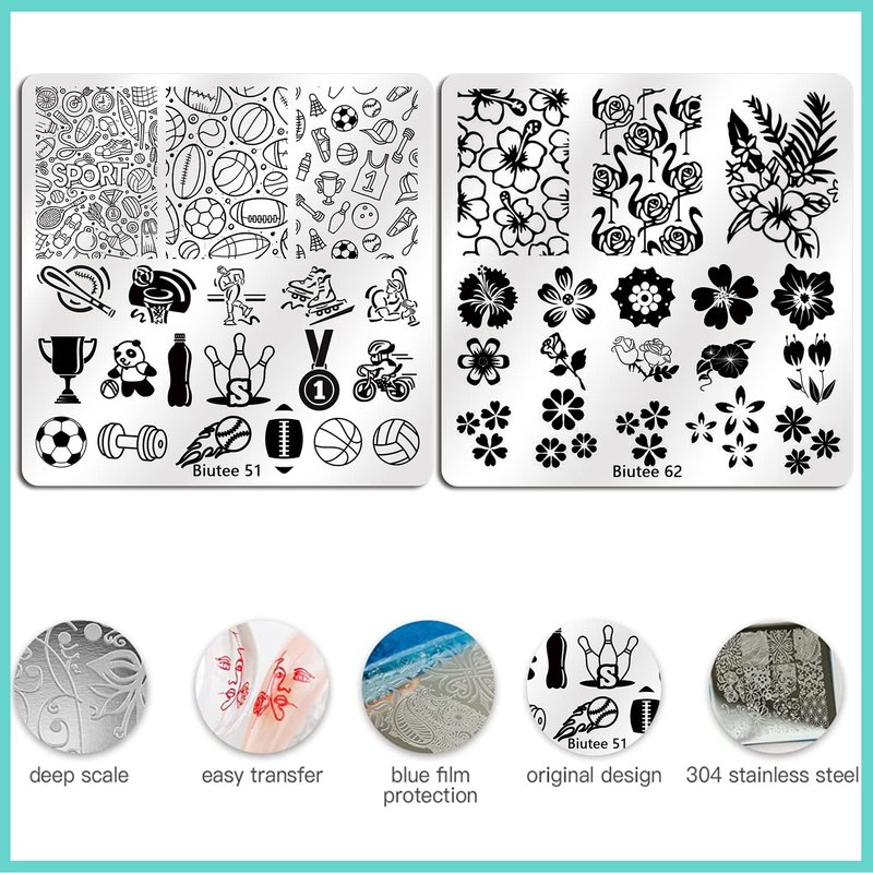 Biutee Nail Stamping Plates Set 15 pcs Nail Art Stamper Scraper Storage Bag Gift Box Nail Stamp Template Kit Lace Flower Butterfly Star Holiday Christmas Design Nail Image Plate