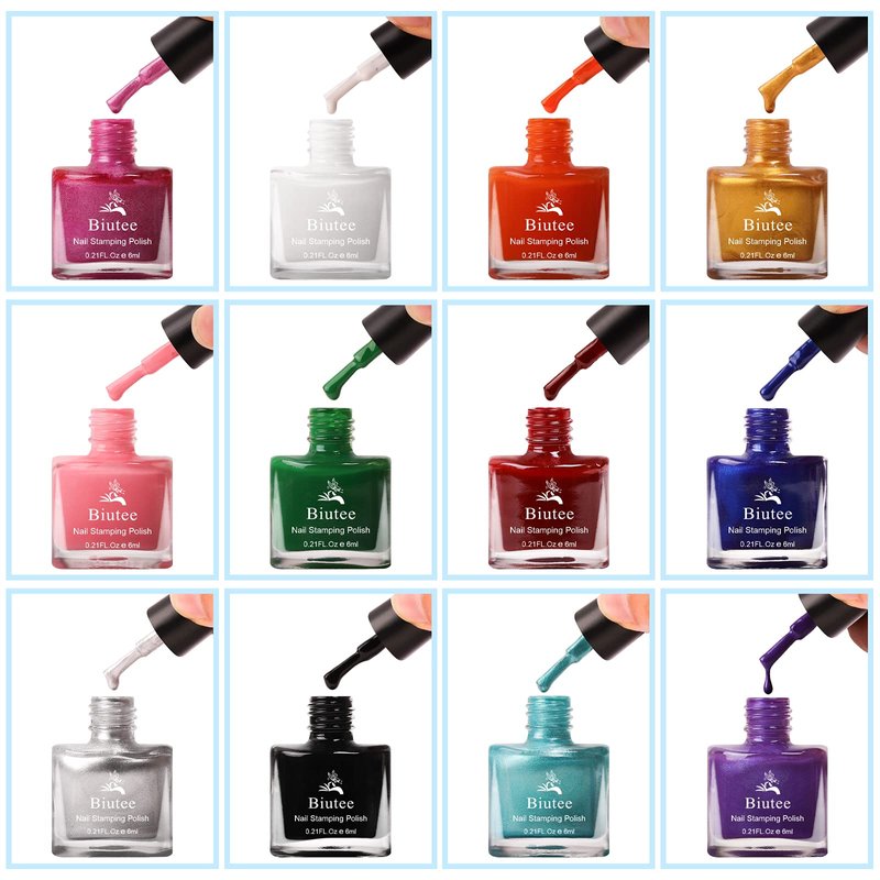 Biutee Nail Stamping Polish 12 Colors 6ML Air dry Special Polish Manicure Print Nail Polish for Stamping Plates Solid Color Nail Polish gift box Nail Varnish Lacquer Nail Art Stamp Gel Polish Set
