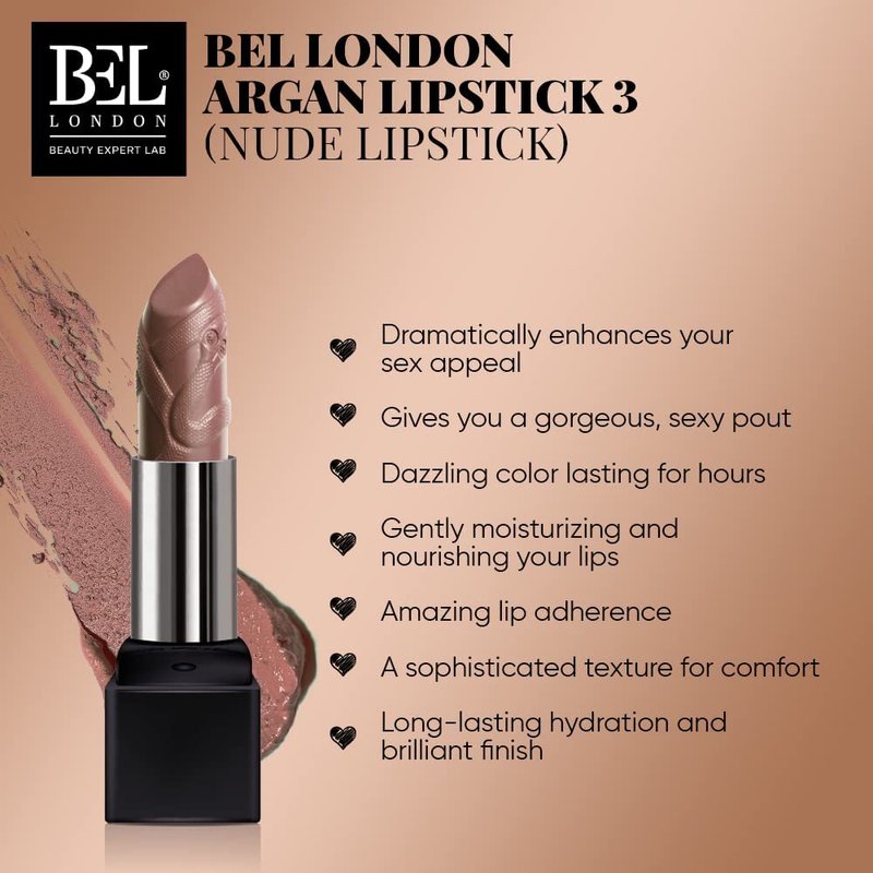 - PERFECT FOR VARIOUS OCCASIONS: The BEL LONDON Argan makeup lipstick is perfect for occasions like business environments, shopping malls, weddings, and parties so you can enjoy a fantastic experience without worrying about your appearance.