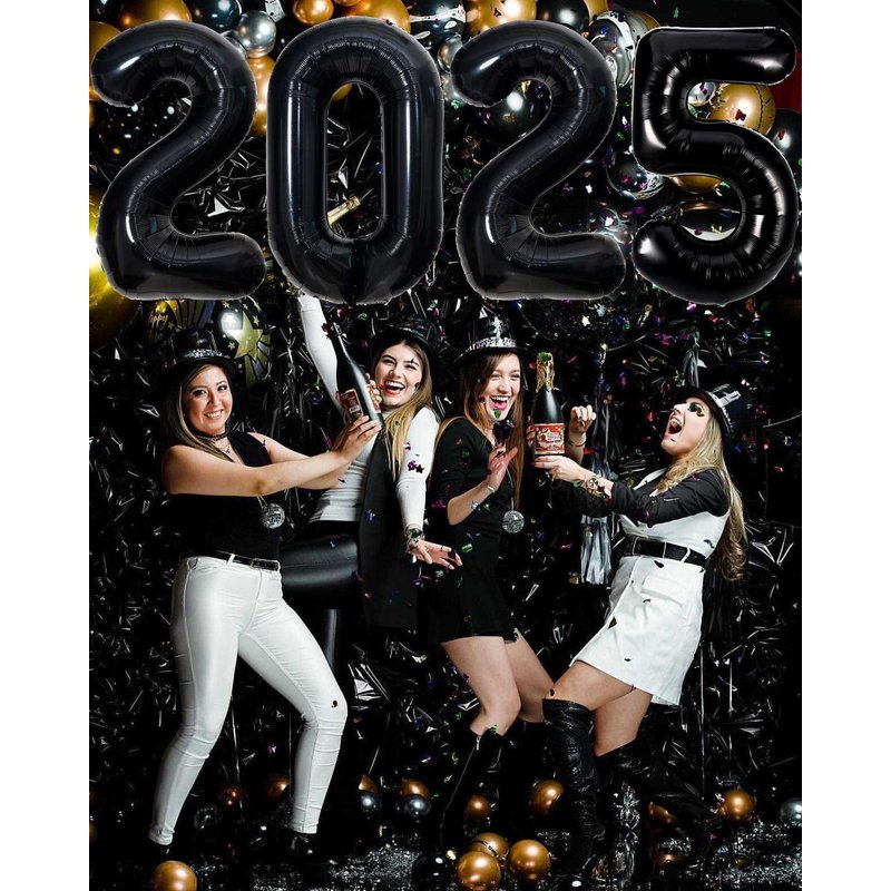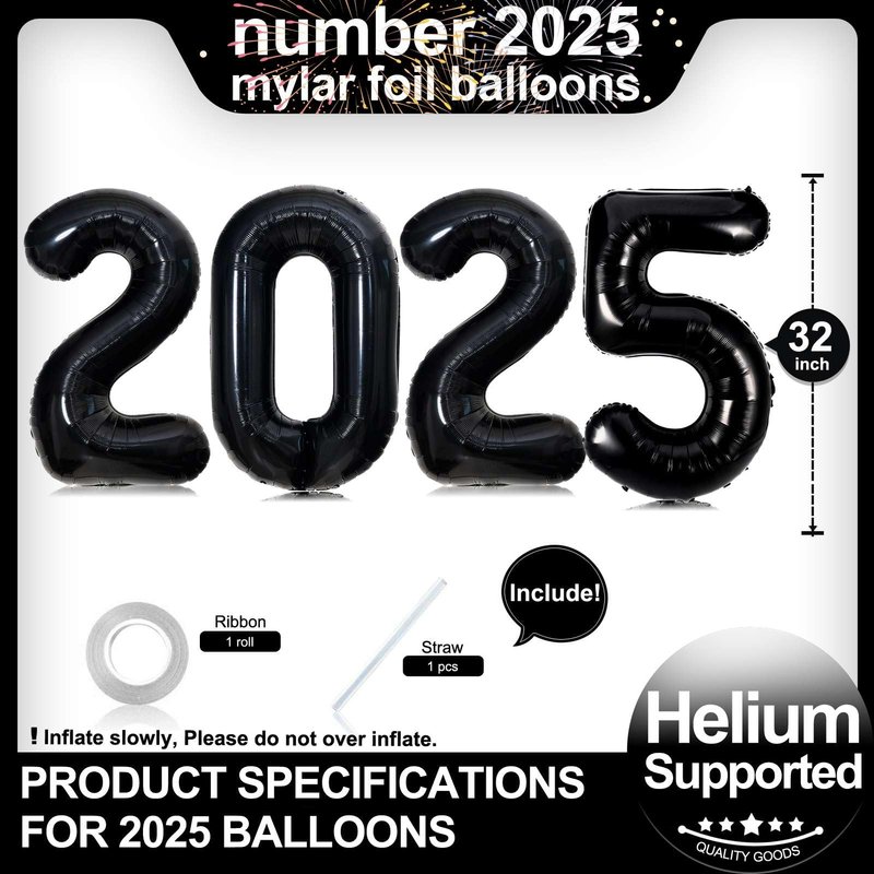 - Package Included: Big 32 INCH Black Foil 2025 Foil Numbers Balloons,1 Inflatable Straw,1 Ribbon