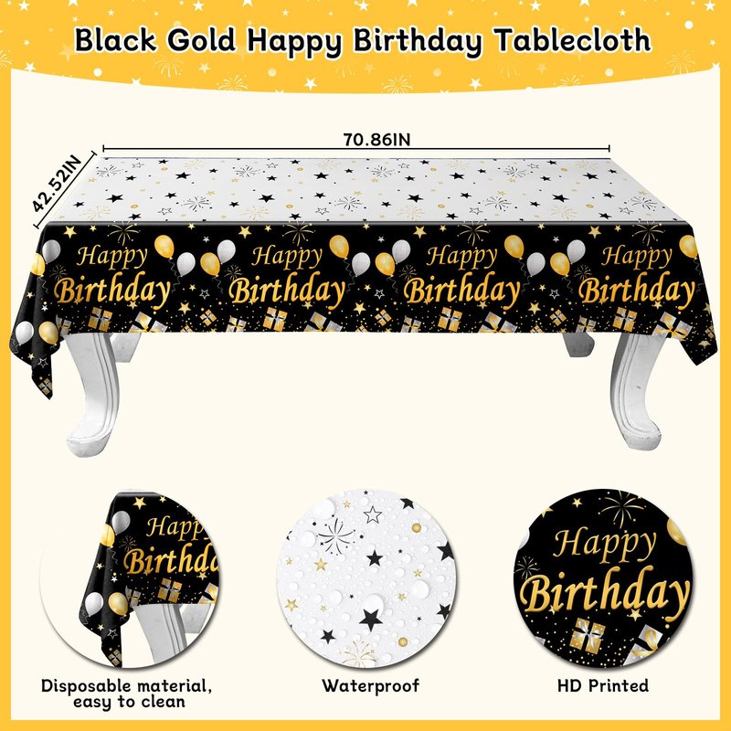 - 🖤Come with Tablecloth & Save Clean Time - The happy birthday tablecloth is waterproof, you don’t have to worry about the oil or juice dripping on the table, easy to clean. Less time cleaning, more time with family.