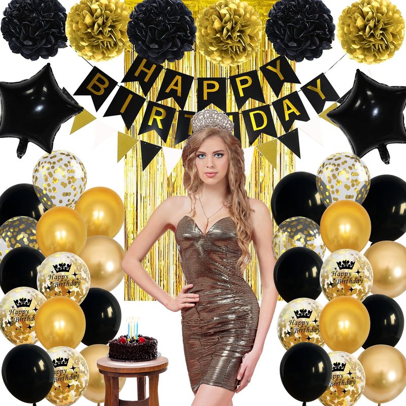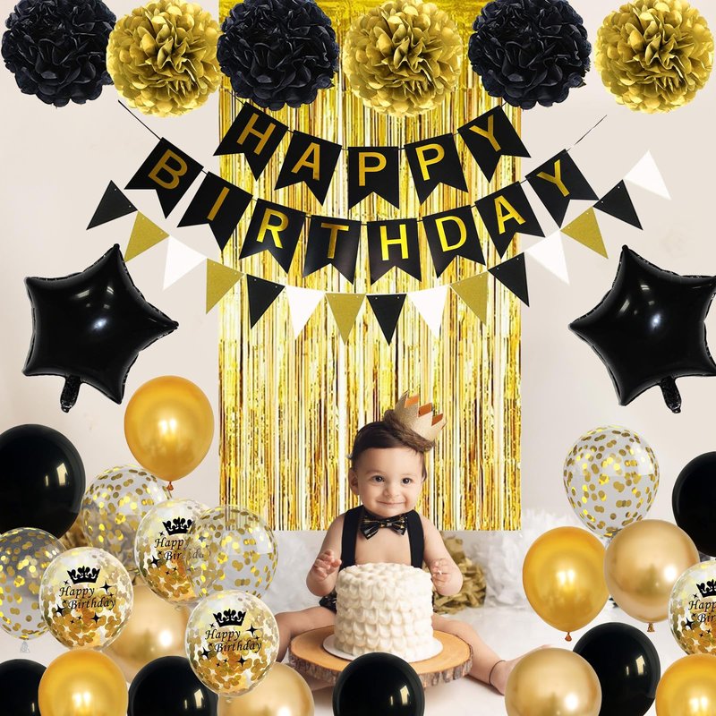 - Part Number: XiaoS-Birthday Decor Black Gold-51996-DE