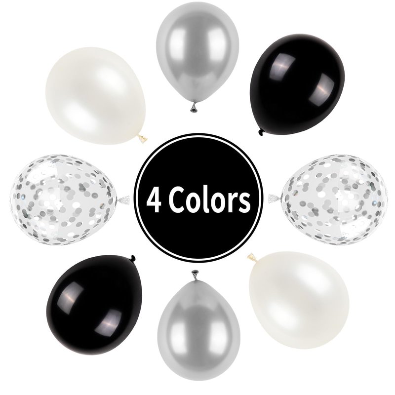 Black and Silver Balloons, Metallic Silver and Black Balloons Pearl Silver Confetti Balloons Black Silver Party Balloons Chrome Latex Balloons for Kids Adults Birthday Wedding Baby Shower Graduation