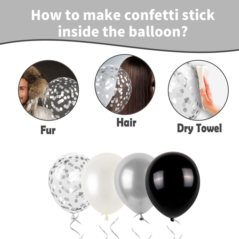 - 【Nice Party Decorations】: Infuse your gathering with warmth and joy with our lovely black silver confetti balloons. Whether gracing tables as exquisite centerpieces or strategically scattered throughout the venue, these colorful balloons serve as the good embellishment, creating unforgettable moments of laughter and connection with loved ones.