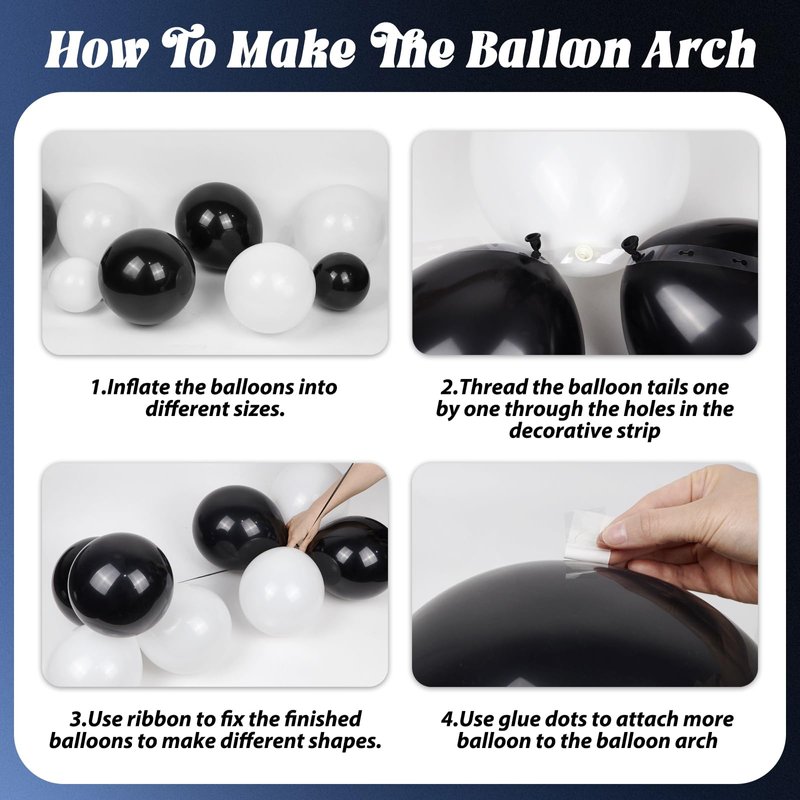 - Great Quality: Our black and silver birthday decorations for men are high quality. The red, black, and white latex balloons are great quality and less likely to burst. We include three tools for easy balloon garland arch creation: ribbon, glue dots, decorating strip. For foil balloons, use a hand pump to inflate through the opening, and deflate with a straw for reuse