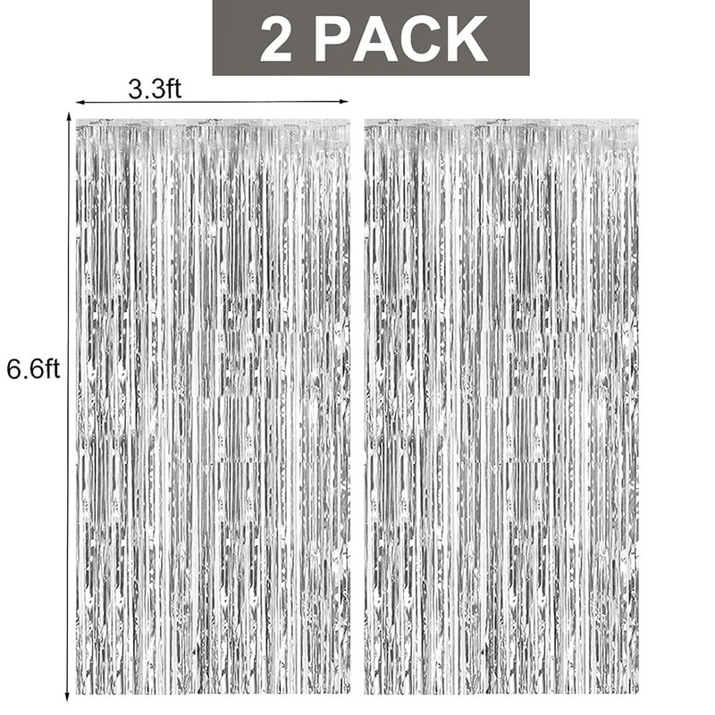 Black and Silver Birthday Party Decorations, Happy Birthday Decorations for Men Women Boys Girls with Happy Birthday Balloon Banner, Fringe Curtains,Star Balloons Kit For Boys Birthday Party Supplies