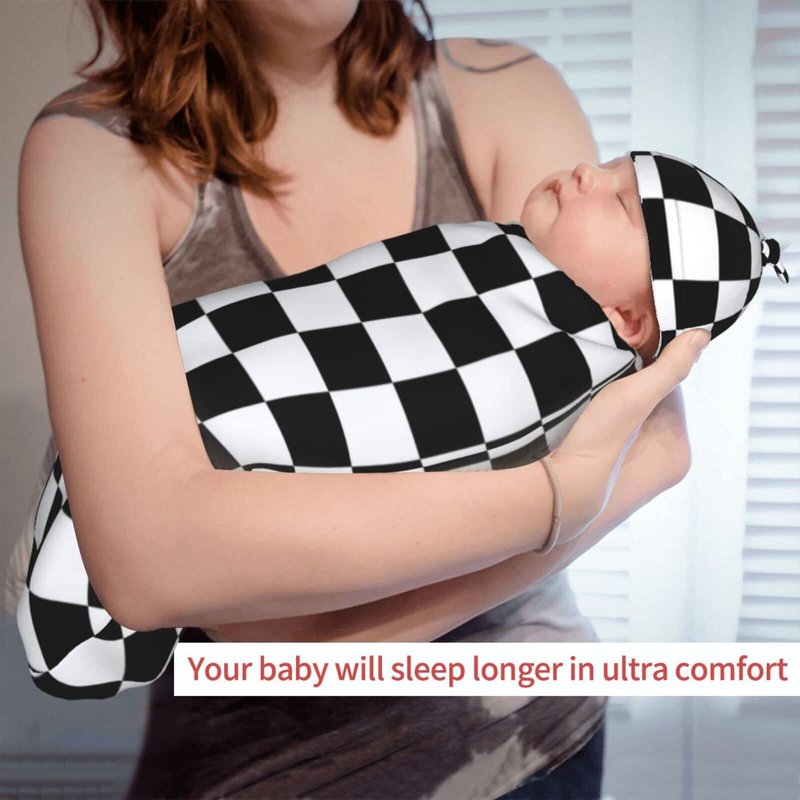 Black and White Checkered Baby Stuff Swaddle Blanket Soft and Stretchy Newborn Swaddle Blankets Sack Receiving Blanket with Beanie Hat Gift for Girls and Boys Infant
