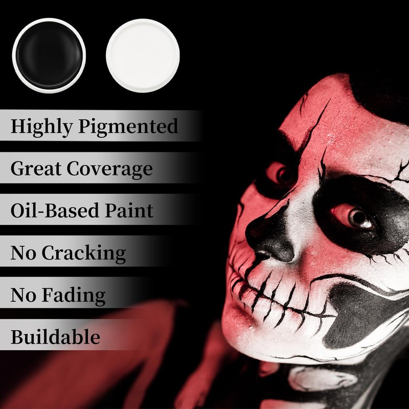 Black and White Face Paint Set - 2.5 oz Halloween Face Body Paint Skeleton Ghost Skull Cosplay Costume Professional SFX Corpse Special Effects Makeup Kit for Adults Kids Full Coverage Skin Paints