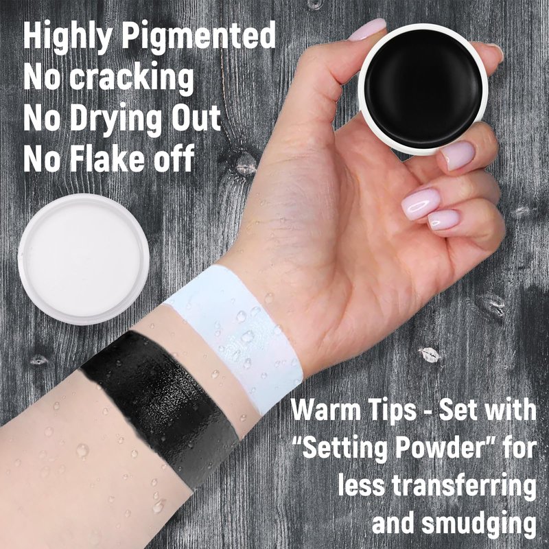 - Large Capacity Face Body Paint - Our oil-based face paint set includes white and black colors, with each container weighing 35g/1.3 oz. Capacity caters to various face and body painting needs, making it suitable for professional use.