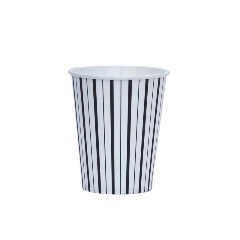 Black and White Fine Stripes Cups (Set of 8) | Black Striped Party Cups | Black Striped Cups | Stripes Party Cups | Black and White Striped Cups