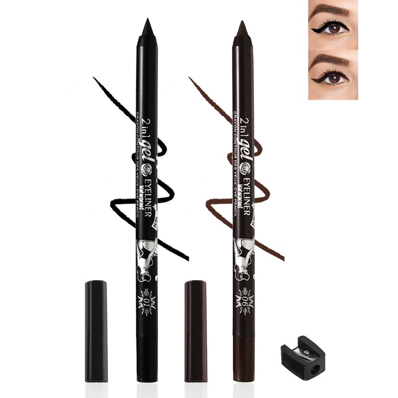 Black Brown Gel Eyeliner Pencil-2Pcs Multi-Use Gel Eye Liner Eyeshadow Pen,Long Lasting Waterproof Smudge-proof Water Line Pencil,Professional Eye Makeup Set for Women with Pencil Sharpener-01+06