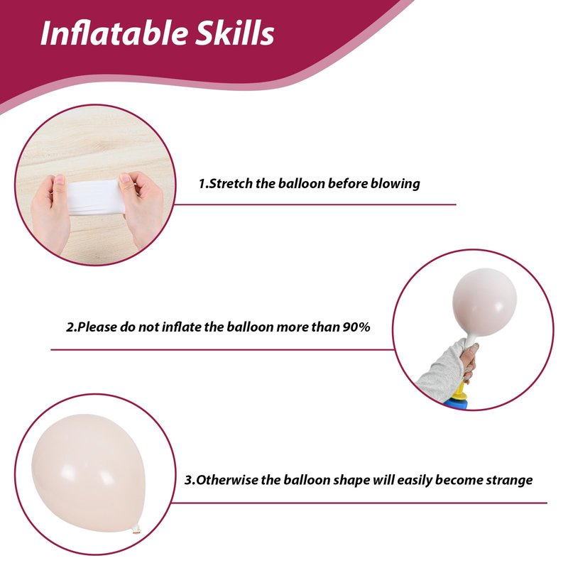 - Balloon material: All balloons are made of natural latex, and each balloon has been strictly hand-tested. The balloons are elastic, non-toxic, harmless and safe. They can be filled with air or helium, and it is recommended to use with a balloon pump