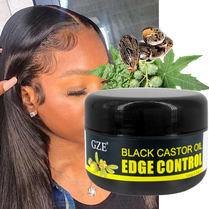 Black Castor Oil Edge Control Strong Hold Non-greasy Edge Smoother Hair Styling Gel Edge Wax No Flaking No White Residue Prevent Breakage with Black Castor Oil