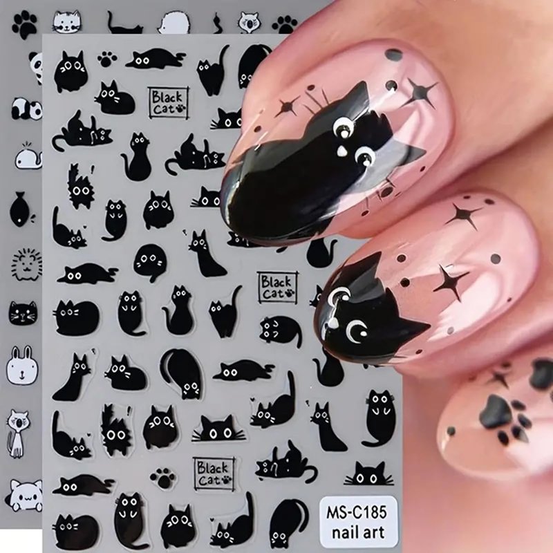 Cute Black Cat Nail Stickers 3D Laser Cute Cartoon Cat Kawaii Nail Decals Manicure Transfer Sliders for Women DIY Manicure Nail Art Decoration Feature Items: Valentines Love Heart Letter Nail Stickers Color: As the picture show Designs: 3D Cute Black Cat Nail Stickers Cute Black Cat Nail Adhesive Sliders Packing: 4PCS 3D Nail Stickers How to use: 1. You can clean your nails first, and then paint your favorite color on your nails or fake nails 2. Choose your favorite pattern 3. Tear off the label on the seal with a knife or tweezers and take it out 4. Stick it on the nail and gently press or rub it 5. After sticking nails, you can apply another layer of nail glue, and the effect will be better Notes: 1. Compare the detail sizes with yours, please allow 1-3cm error, due to manual measurement. 2. 2. Due to the difference between different monitors, the pictures may not reflect the actual color.