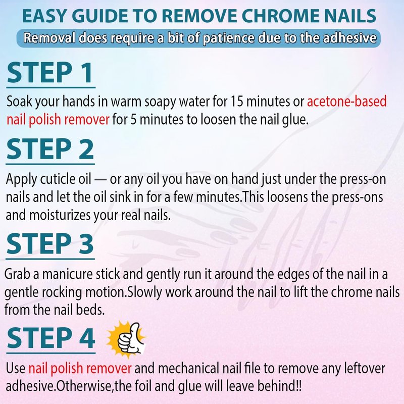 -Do not remove it abruptly which may hurt you fake nails.