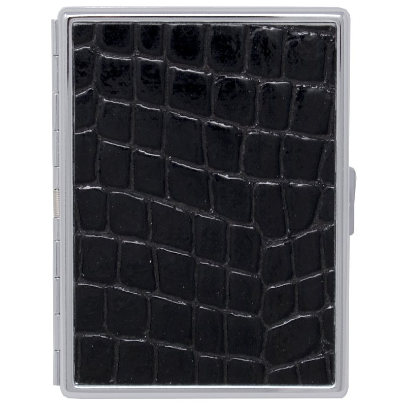 - Featuring a classic crocodile print embossed on genuine leather, this metallic cigarette case is sturdy, corrosion resistant and will last you for years to come. Measuring 3" X 4.25", this compact case can accommodate 9 100s or Regular size cigarettes.