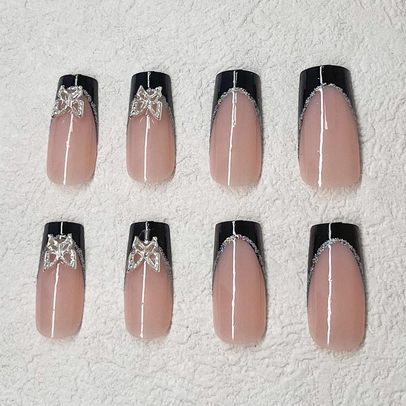 - 【Soft & Flexible】Made with soft gel, our black french false nails with butterfly rhinestones are gentle on your nail beds and feel like real nails. They fit the nail bed perfectly with a seamless cuticle line.