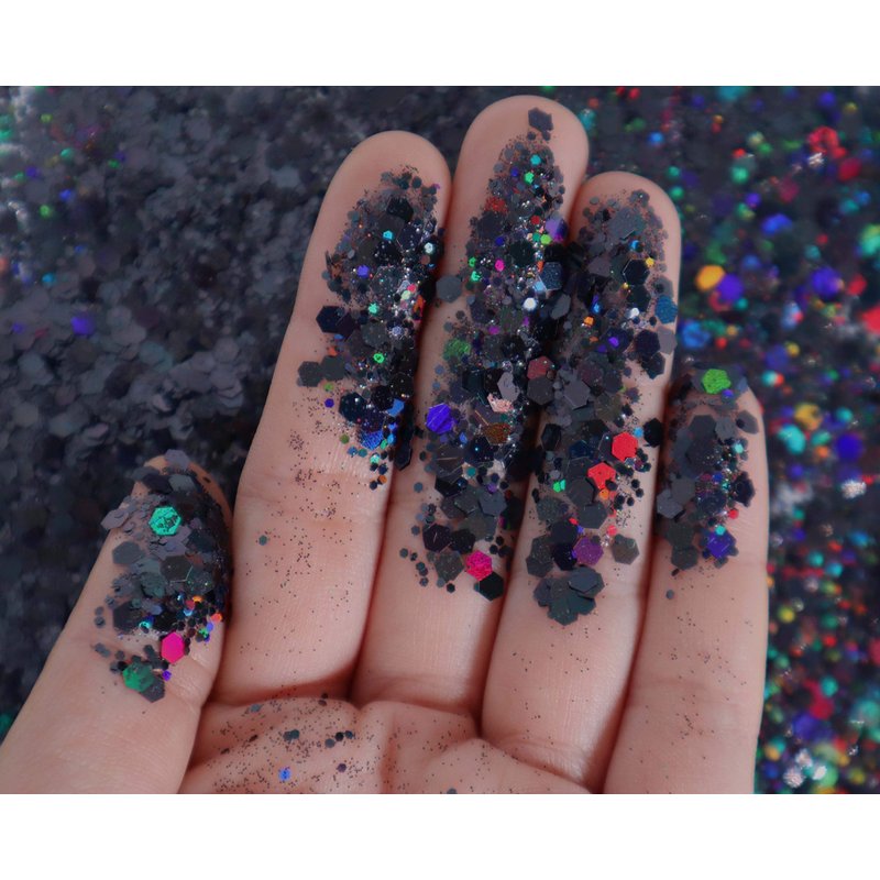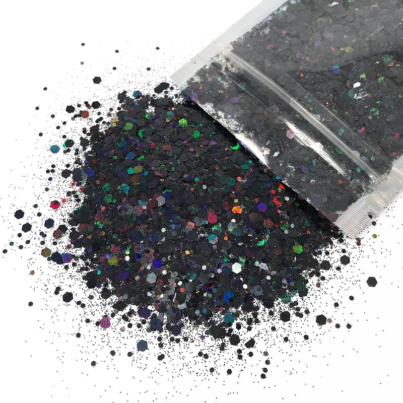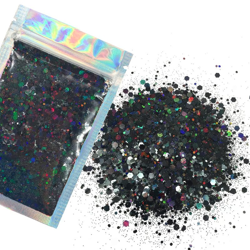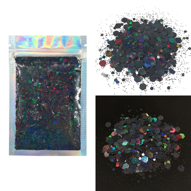 Black Glitter - 15G Chunky Face Glitter, Hair Glitter, Eye Glitter and Body Glitter. Rave Glitter, Festival Accessories, Cosmetic Glitter Makeup. Loose Glitter Set