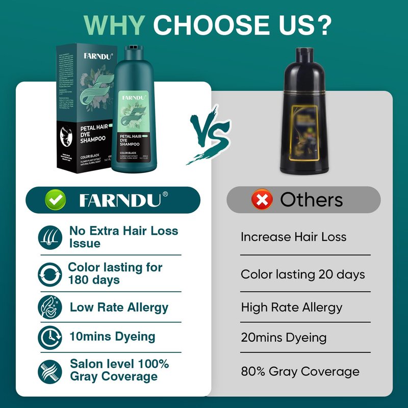 - RICH FLORAL FRAGRANCE: Farndu petal dye shampoo is a real game changer. No harsh chemical smell, large amounts petal extraction ingredients make the shampoo hair dye is rich of floral fragrance. After using it your hair will be scented with flowers.